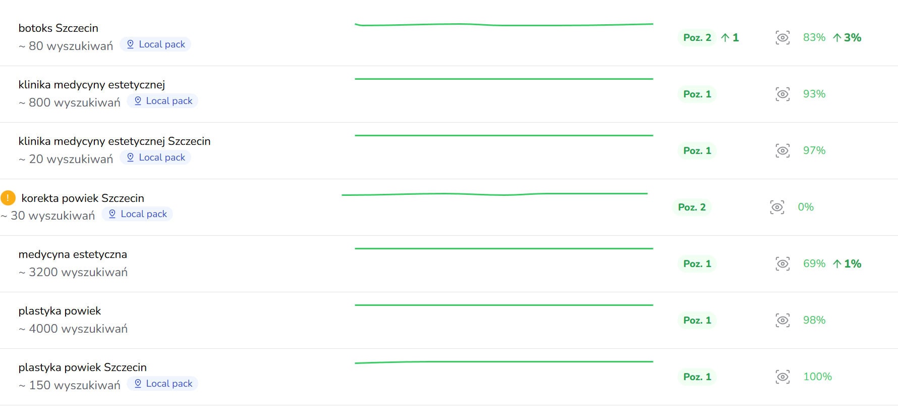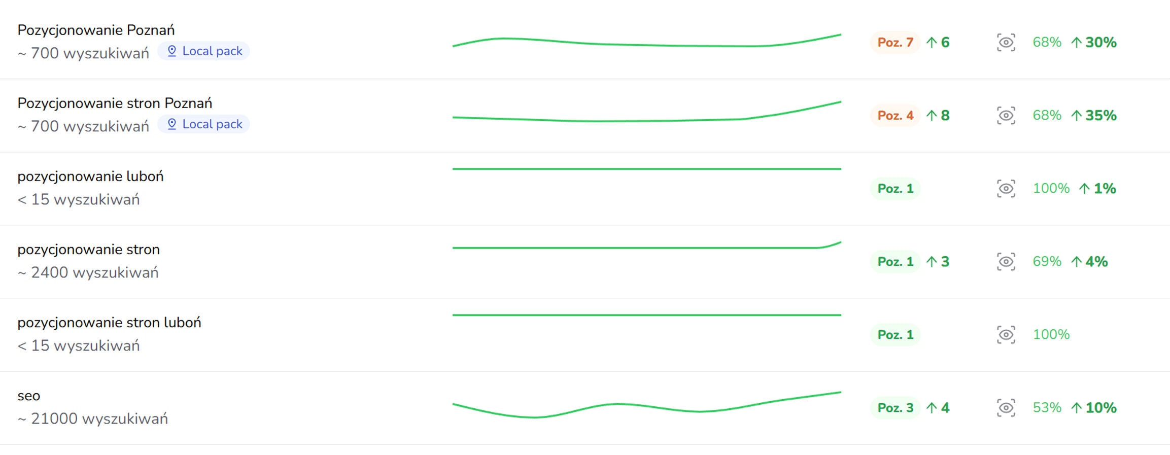 Wynik w Poznaniu jest o tyle satysfakcjonujący, że tam jest wiele dużych agencji SEO, a ja nie mam lokalizacji bezpośrednio w Poznaniu, co jest dodatkowym utrudnieniem.